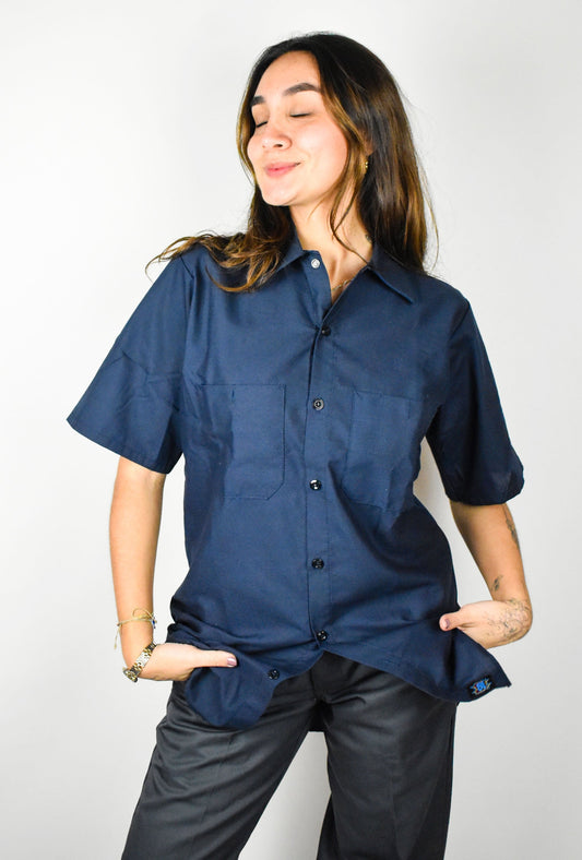 Camisa de Trabajo Manga Corta Lisa - Azul Marino (W)